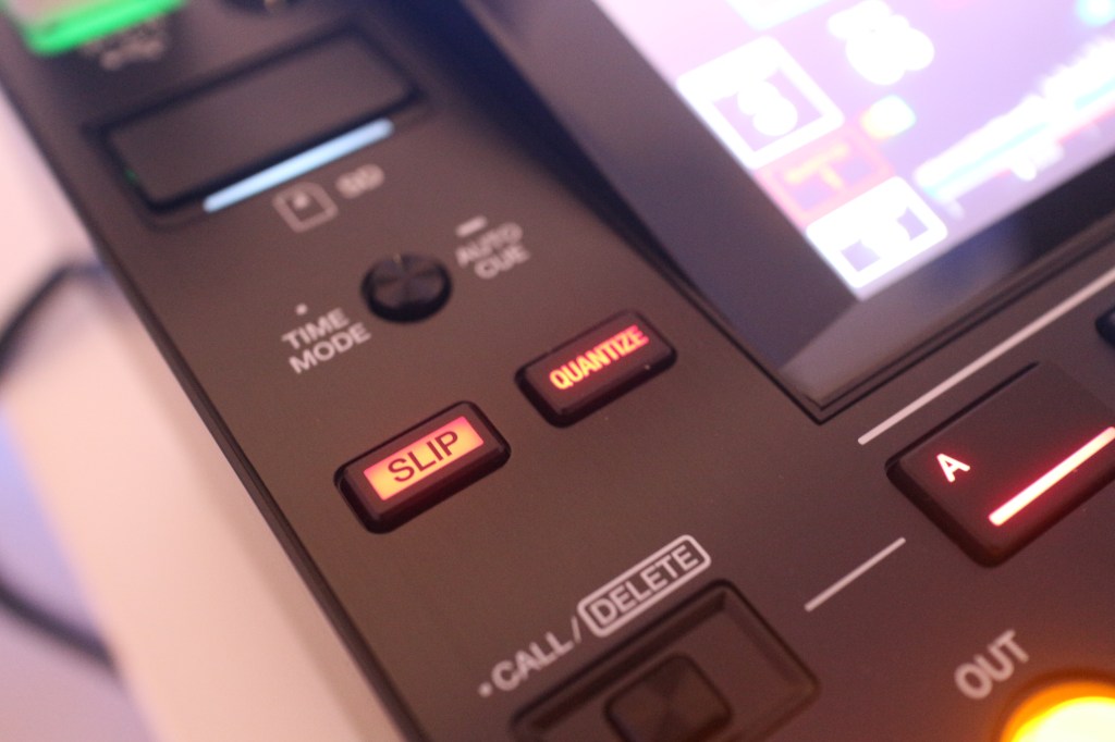 Otros controles nuevos son la pareja de botones para hacer loops automáticos de 4 y 8 tiempos (antes sólo teníamos botón para el loop de 4 tiempos), con función secundaria para duplicar o dividir el tamaño del loop una vez creado. Bajo estos dos botones tenemos otros dos nuevos para la función Beatjump, que antes sólo era accesible desde la pantalla táctil. El botón para la función Slip ha cambiado a la parte superior izquierda del aparato, una reubicación sin mayor importancia. Bajo los botones de Master y Sync tenemos ahora el de Key Sync para activar la función de cambio de tonalidad automático para mezcla armónica. No todo son añadir controles, antes teníamos dos potenciómetros para regular el tiempo de arranque y parada de la reproducción, ahora sólo hay uno y desde la configuración del aparato podemos decidir si maneja uno de los dos valores o ambos.