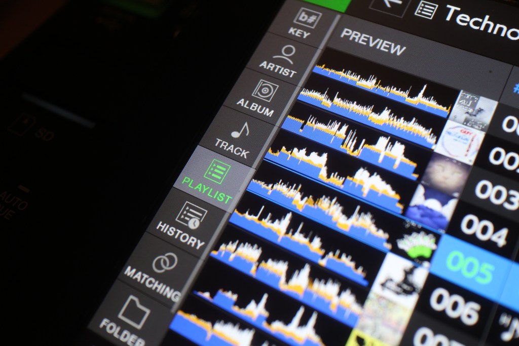 La navegación por la librería ha mejorado muchos enteros, en la parte izquierda tenemos siempre varios atajos para ver la música por playlists, tonalidad, autor, BPM, etc, podemos también cambiar el tamaño de la tipografía pudiendo elegir 3 tamaños distintos, disponemos de una columna personalizable en la que elegir qué metadatos vemos y si queremos ver los temas ordenados por esos metadatos, y toda la información adicional del tema seleccionado la podemos ver a gran tamaño con un simple toque en la esquina superior derecha. Por cierto he visto comentar en otros artículos que el aparato no puede crear playlists por sí solo: no es correcto, sí puedes usando un viejo método que es convertir las pistas que añadas al Tag List con la función Tag Track en una playlist nueva que queda almacenada y que luego puedes sincronizar con Rekordbox.
