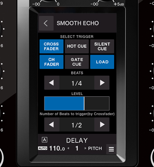 - Nueva efecto Smooth Echo, incorporado de forma independiente al resto de efectos, y que se activa con controles y ajustes dedicados. Permite crear nuevos sonidos al scratchear según Pioneer.